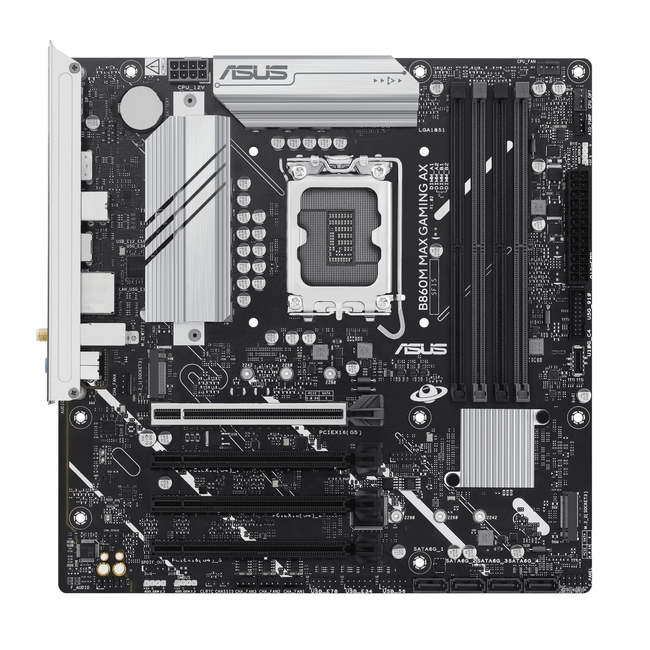 Η ASUS B860M MAX GAMING AX είναι μια motherboard Micro-ATX υψηλής απόδοσης που έχει δημιουργηθεί για τους τελευταίους επεξεργαστές Intel®. Τα κύρια χαρακτηριστικά περιλαμβάνουν στιβαρή κατασκευή, προηγμένη συνδεσιμότητα και εξαιρετικές λύσεις ψύξης.