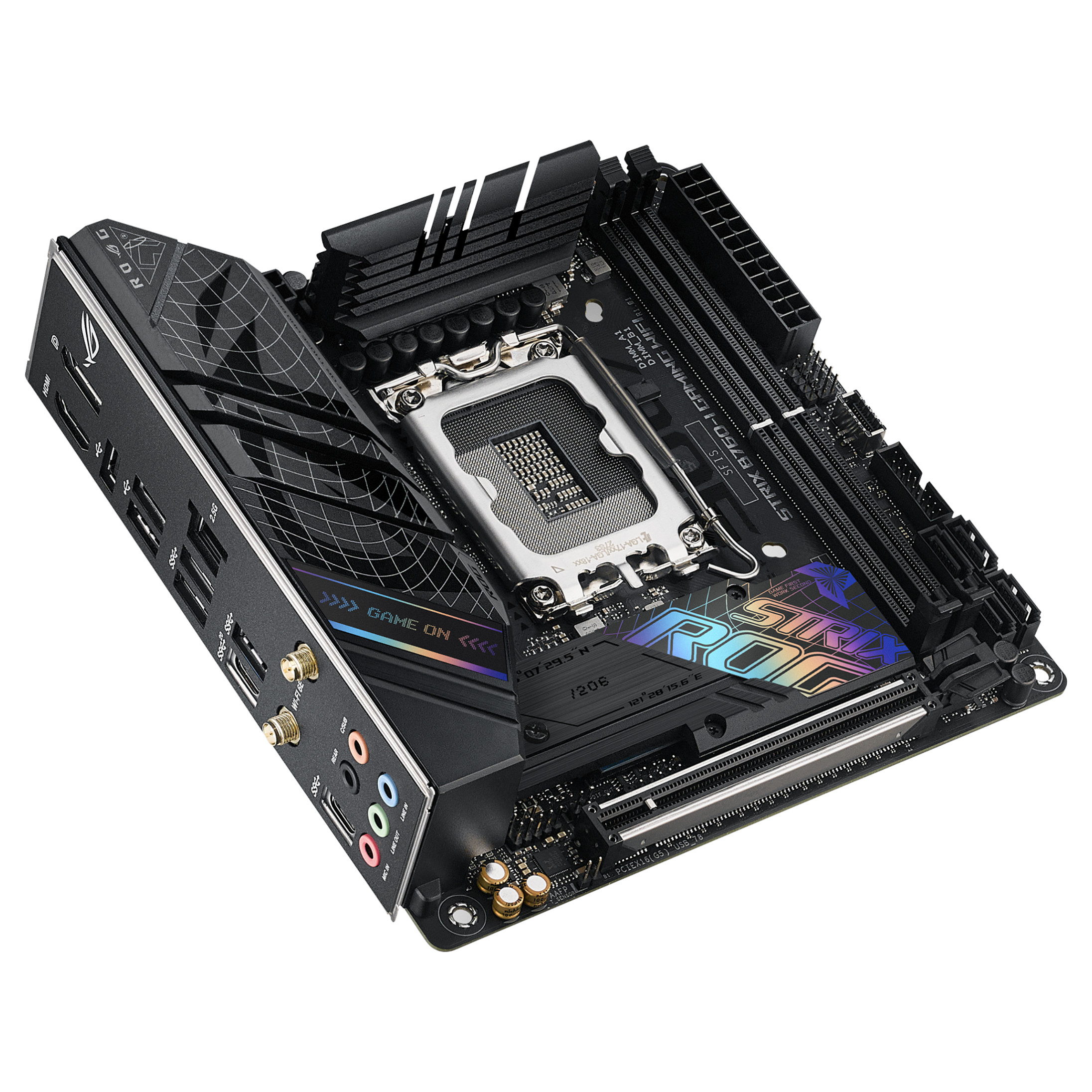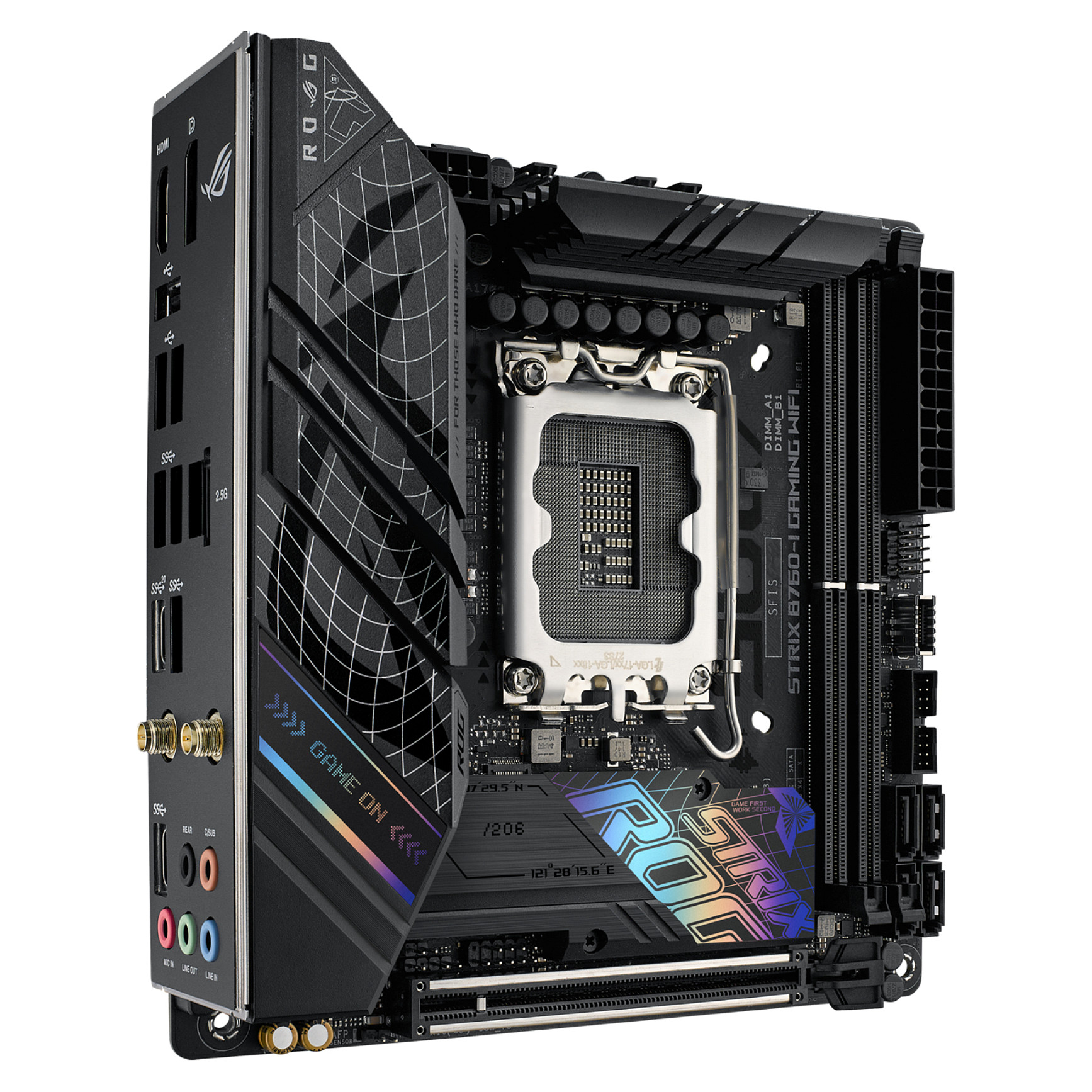 Η ASUS ROG STRIX B760-I GAMING WIFI είναι μια υψηλής απόδοσης Mini-ITX μητρική πλακέτα που έχει σχεδιαστεί για τους λάτρεις των παιχνιδιών. Δημιουργημένη με το ισχυρό chipset Intel B760, αυτή η μητρική πλακέτα έχει σχεδιαστεί για να υποστηρίζει επεξεργαστές με υποδοχή LGA1700 της Intel, καλύπτοντας τους επεξεργαστές Core 14ης, 13ης και 12ης γενιάς, Pentium Gold και Celeron.
