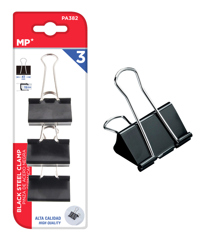MP σετ κλιπ συγκράτησης εγγράφων PA382, μεταλλικά, 41mm, μαύρα, 3τμχ