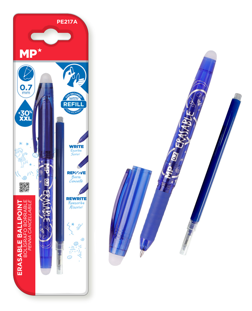 MP στυλό διαρκείας PE217A με ανταλλακτικό μελάνι, erasable, 0.7mm, μπλε