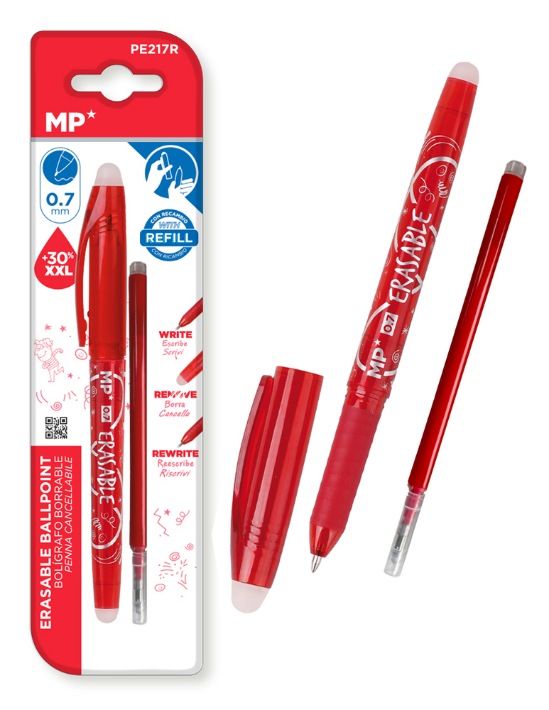 MP στυλό διαρκείας PE217R με ανταλλακτικό μελάνι, erasable, 0.7mm, κόκκινο