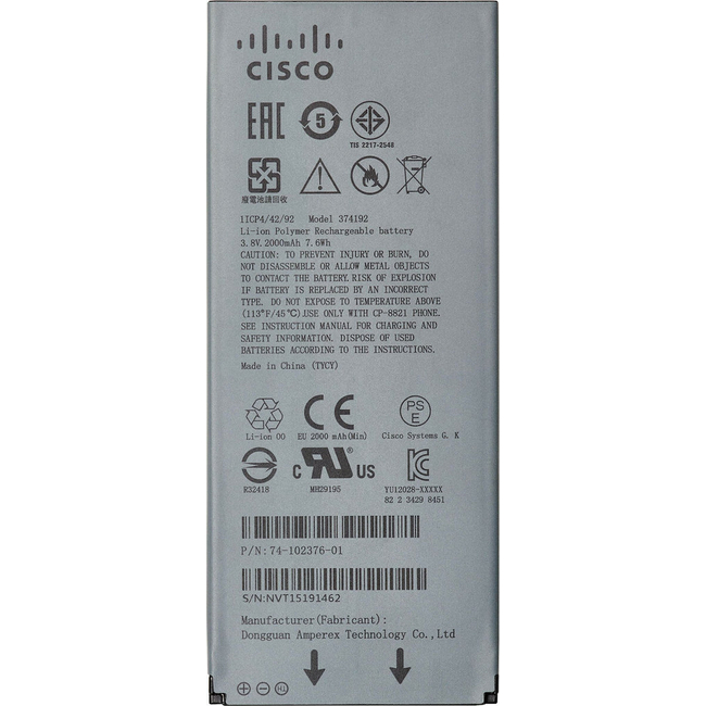 Αυτή η μπαταρία διαθέτει επίσης επιλογή αυξημένης χωρητικότητας και είναι συμβατή με τα τηλέφωνα Cisco 8821 και 8821-EX. Επιπλέον, πληροί αυστηρά πρότυπα ασφαλείας, διασφαλίζοντας την προστασία του χρήστη.