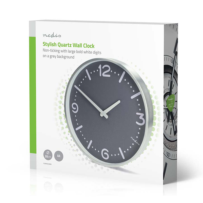NEDIS Ρολόι τοίχου αθόρυβο γκρι CLWA3226SS