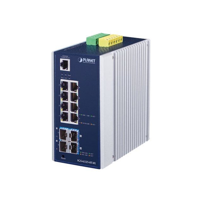 Ο Network Switch Planet Industrial L3 8-Port 1000T + 4-Port 10G SFP+ (Μοντέλο: IGS-6325-8T4X) είναι ένας ανθεκτικός διακόπτης Ethernet που έχει κατασκευαστεί για βιομηχανικά περιβάλλοντα. Σχεδιασμένος να λειτουργεί αξιόπιστα σε σκληρές συνθήκες, αυτός ο διαχειριζόμενος διακόπτης Layer 3 προσφέρει προηγμένη λειτουργικότητα και υψηλή ταχύτητα σύνδεσης.