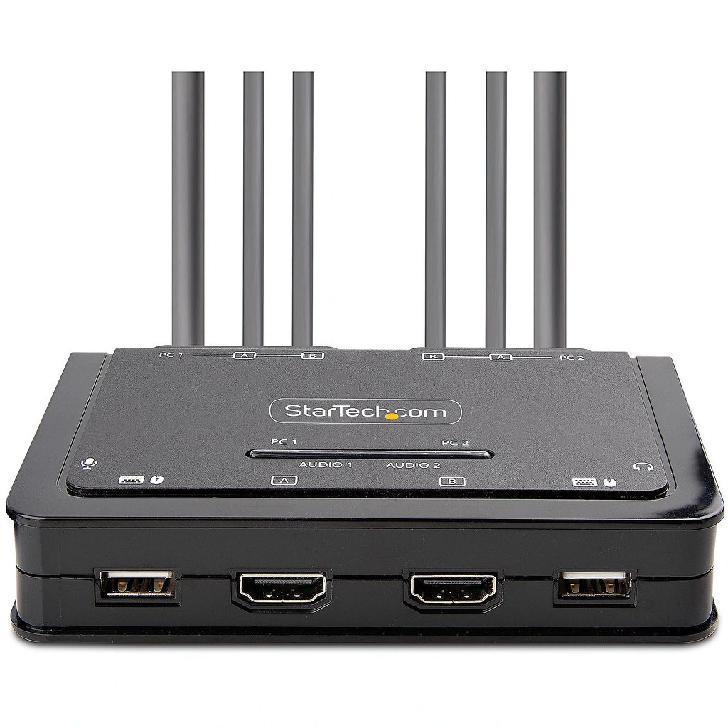 KVM Switch StarTech Dual-Monitor 4K 60Hz, 5ft/1.5m USB-A/HDMI/Audio Integrated Cables