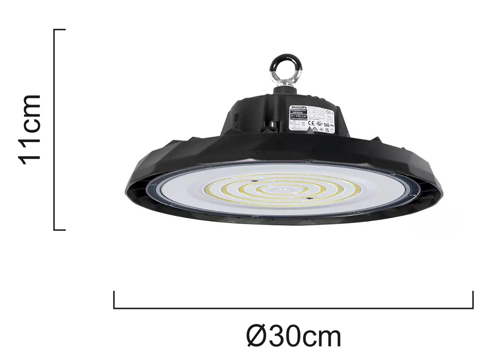 Με ισχύ 100W και φωτεινότητα 15000 lumens, προσφέρει έντονο, καθαρό φωτισμό ψυχρού λευκού χρώματος (6500K), εξασφαλίζοντας άριστη ορατότητα σε αποθήκες, συνεργεία, καταστήματα και βιομηχανικές εγκαταστάσεις.