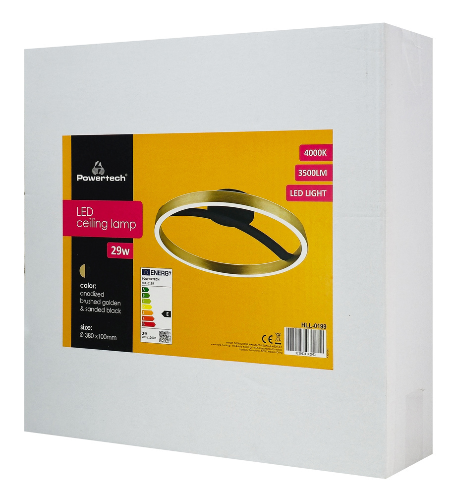 POWERTECH LED φωτιστικό οροφής HLL 0199 χρυσό μαύρο 29W 4000K Φ38x10cm