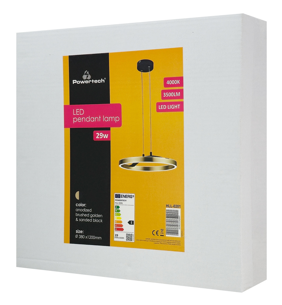 POWERTECH LED φωτιστικό οροφής HLL-0201, 29W, 4000K, Φ38x120cm, χρυσό/μαύρο