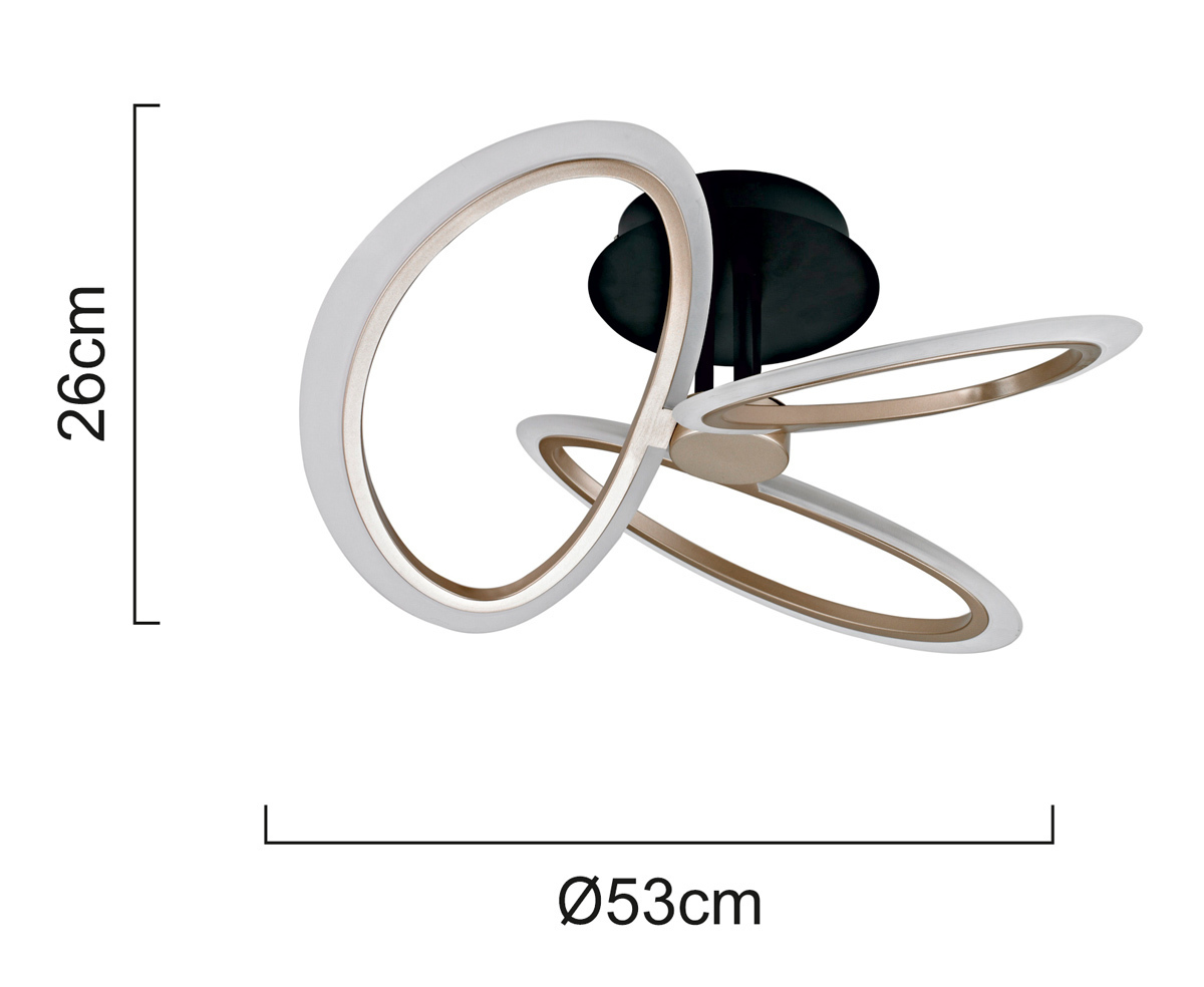 POWERTECH LED φωτιστικό οροφής HLL-0206, 40W, 4000K, Φ53x26cm, οπάλ χρυσό/μαύρο
