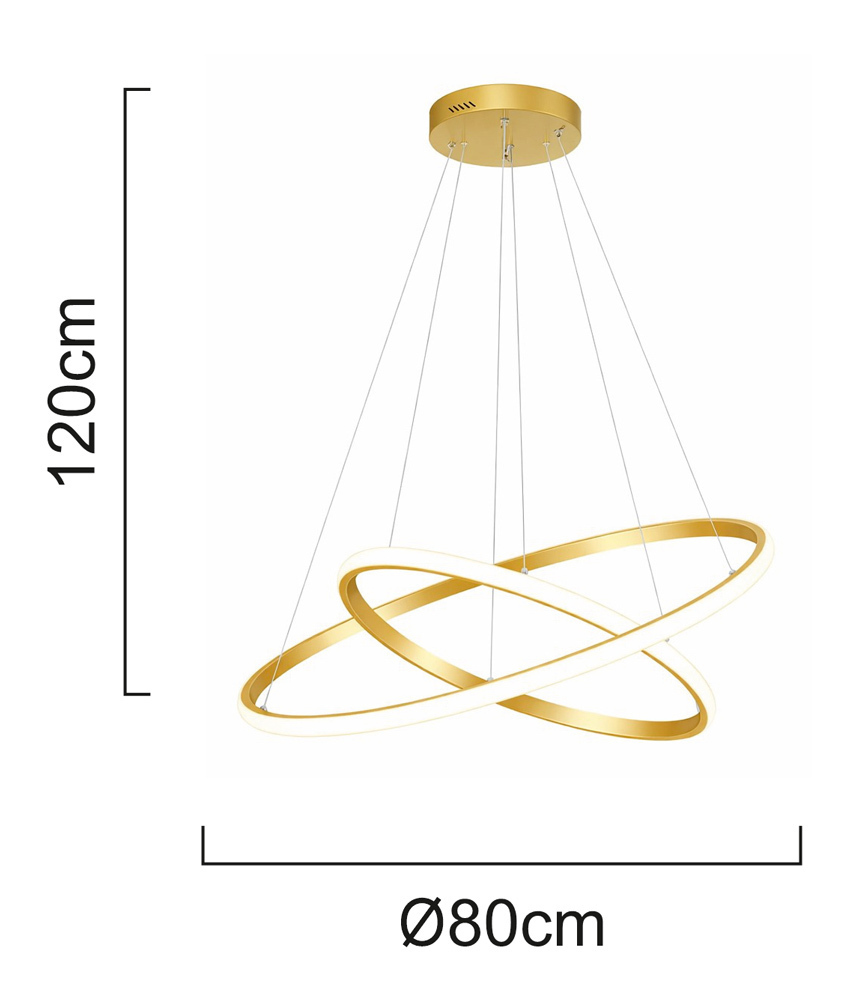 POWERTECH LED φωτιστικό οροφής PT-1530, 60W, 4000K, Φ80x120cm, χρυσό