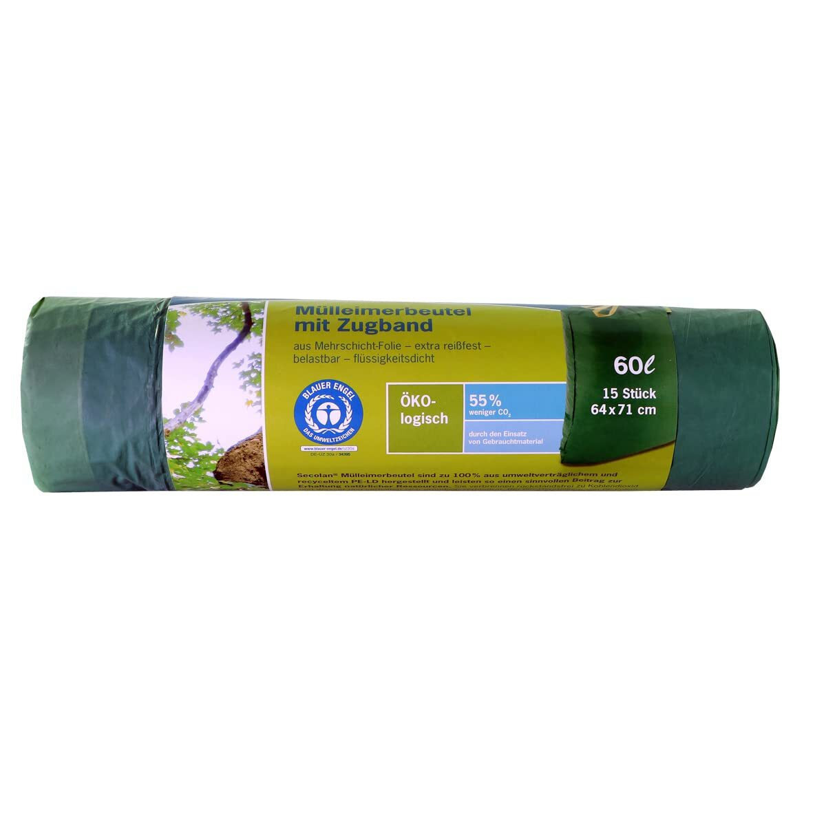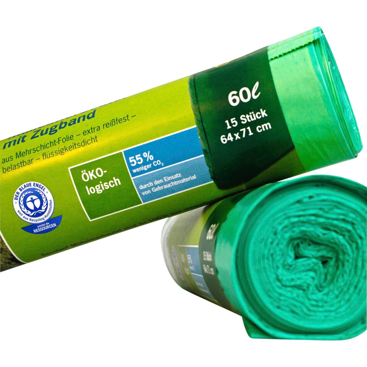Σακούλες απορριμμάτων Secolan 60 L με κορδόνι, πράσινες, 15 τεμ.
