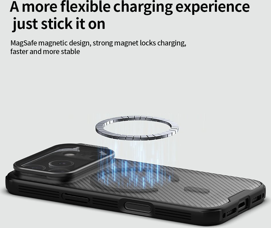 Η θήκη της σειράς CamShield Prop Magnetic της Nillkin χαρακτηρίζεται από την ενισχυμένη προστασία που προσφέρει, το σκληρό υλικό κατασκευής της με την ανάγλυφη επιφάνεια, αλλά και την έξτρα προστασία των καμερών και της ιδιωτικότητας σας, χάρη στο ανοιγόμενο μεταλλικό καπάκι καμερών, το οποίο μπορεί να χρησιμοποιηθεί και ως stand.