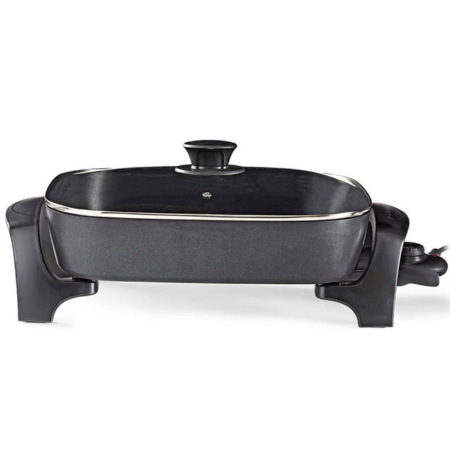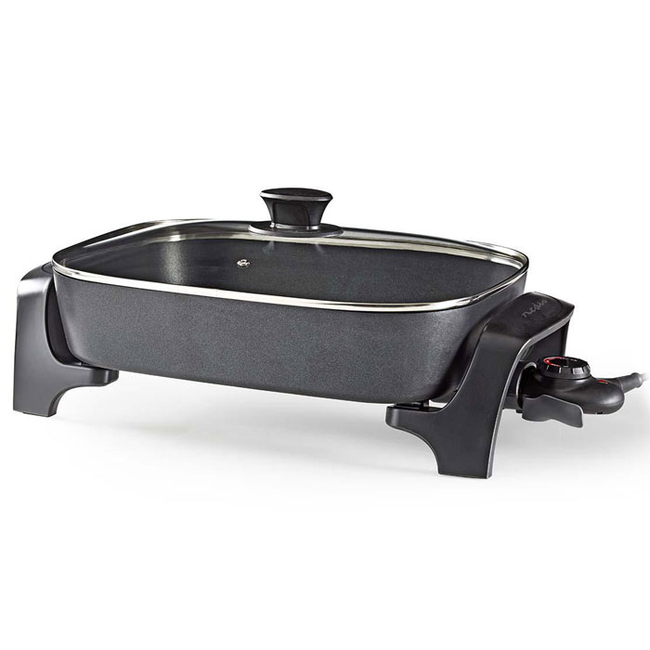 Το πρακτικό ηλεκτρικό σκεύος μαγειρικής με διάμετρο 40cm, είναι μία σύγχρονη και έξυπνη συσκευή που θα αναβαθμίσει την κουζίνα σας. Μπορείτε να μαγειρέψετε, να ψήσετε και να τηγανίσετε εύκολα, γρήγορα και υγιεινά, με λίγο ή καθόλου λάδι! Mαγειρέψτε λαχανικά, κρέας, ψάρια, πίτσες, κρέπες και ότι άλλο επιθυμείτε, διατηρώντας όλα τα θρεπτικά συστατικά. Διαθέτει μεγάλη χωρητικότητα και ρυθμιζόμενο θερμοστάτη που εξασφαλίζουν την τέλεια προετοιμασία των πιάτων σας.