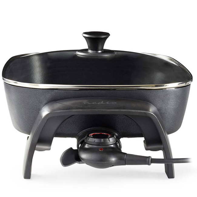 Σε αντίθεση με τις παραδοσιακές εστίες, το ηλεκτρικό αυτό σκεύος μαγειρικής μπορεί να ρυθμιστεί άμεσα σε μια σταθερή θερμοκρασία η οποία προσαρμόζεται εύκολα χάρη στον ρυθμιζόμενο θερμοστάτη. Η κατασκευή του από αλουμίνιο και το ενσωματωμένο θερμαντικό στοιχείο προσφέρουν εξαιρετική κατανομή της θερμότητας σε ολόκληρη την επιφάνεια μαγειρέματος.