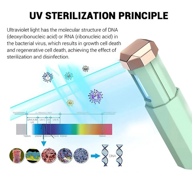 Φορητή συσκευή για την αποστείρωση επιφανειών και αντικειμένων σε ελάχιστο χρόνο. Εξοπλισμένη με UVC LED υπεριώδους ακτινοβολίας που εξοντώνει γρήγορα το 99,99% των μικροβίων και βακτηρίων. Εξοπλίζεται με επαναφορτιζόμενη μπαταρία 600mAh και λειτουργεί με ένα απλό πάτημα του πλήκτρου αφής. Με ιδιαίτερα μικρό μέγεθος για να το έχετε πάντα μαζί σας.