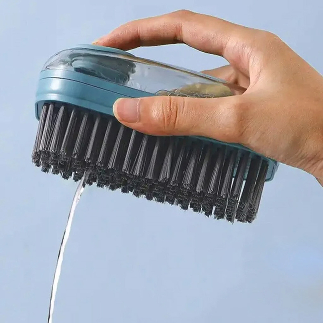 Βούρτσα καθαρισμού, ιδανική για τον υγρό καθαρισμό παπουτσιών, ρούχων, σκευών κ.α. Διαθέτει ανθεκτικές τρίχες σιλικόνης και ενσωματώνει δοχείο για την τοποθέτηση υγρού απορρυπαντικού.