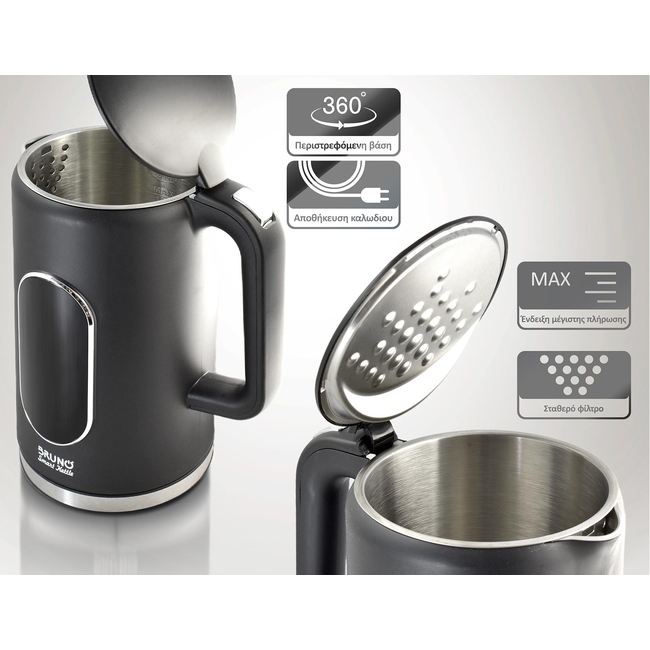 BRUNO Βραστήρας νερού προηγμένων λειτουργιών, ψηφιακός με διπλό τοίχωμα BRN-0245, 1.7L 2200W, μαύρος