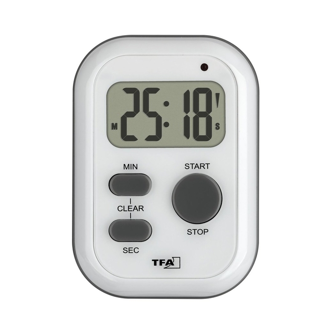 Το Επιτραπέζιο Ρολόι TFA 38.2053.02 digital Timer and Stopwatch είναι μια πολυλειτουργική συσκευή διαχείρισης χρόνου ιδανική για διάφορες καθημερινές δραστηριότητες. Διαθέτει τόσο λειτουργίες αντίστροφης μέτρησης όσο και χρονομέτρησης, κάνοντάς την κατάλληλη για μαγείρεμα, αθλήματα, εργασία και μελέτη.