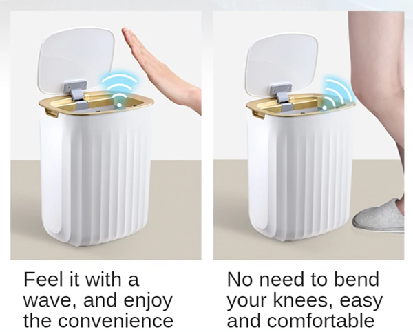Πλαστικός κάδος απορριμμάτων με χωρητικότητα 12 λίτρα. Το καπάκι του ανοίγει αυτόματα με την κίνηση του χεριού σας χάρη στον ενσωματωμένο αισθητήρα που διαθέτει ενώ στο εσωτερικό του διαθέτει αποσπώμενο δακτύλιο για την εύκολη στερέωση της σακούλας απορριμμάτων.