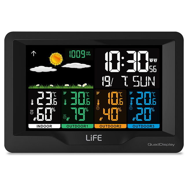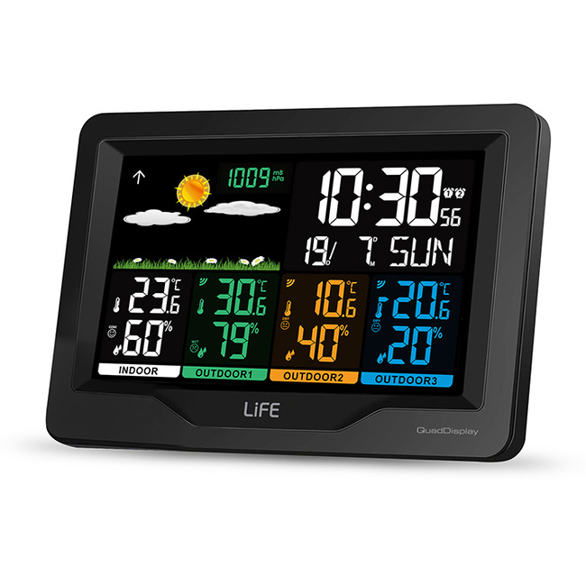 Μετεωρολογικός Σταθμός Με 3 Ασύρματους Εξωτερικούς Αισθητήρες, Έγχρωμη Οθόνη Lcd 5.9" Και Ρολόι / Ξυπνητήρι