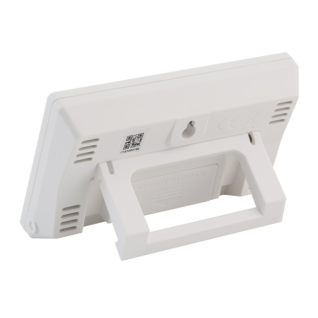Επιπλέον, διαθέτει ένδειξη ημερομηνίας και ώρας (12/24) και λειτουργία ξυπνητήρι. Η τοποθέτηση του μπορεί να γίνει επιτραπέζια ή σε τοίχο.
