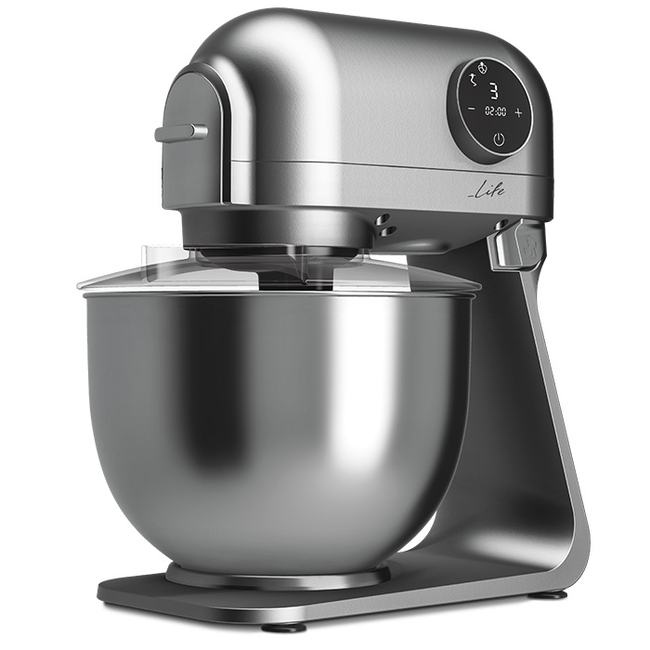 Είναι εξοπλισμένη με τρία εξαρτήματα για να επιλέγετε ανάλογα με τα υλικά και την συνταγή σας: γάντζο ανάμιξης από αλουμίνιο, γάντζο ζυμώματος και αυγοδάρτη από ανοξείδωτο ατσάλι. Με την πλανητική κίνηση των αναδευτήρων και με την σταθερή ταχύτητα ανάμιξης που προσφέρει, θα έχετε γρήγορα και τέλεια αποτελέσματα ακόμα και σε βαριές ζύμες!