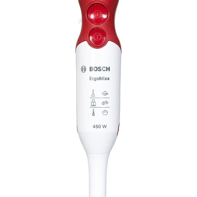 Ο Bosch MSM64010 ErgoMixx Hand Blender είναι ένα ισχυρό και πολυλειτουργικό μπλέντερ σχεδιασμένο για αποτελεσματική ανάμειξη, θρυμματισμό και ψιλοκόψιμο διαφόρων υλικών.