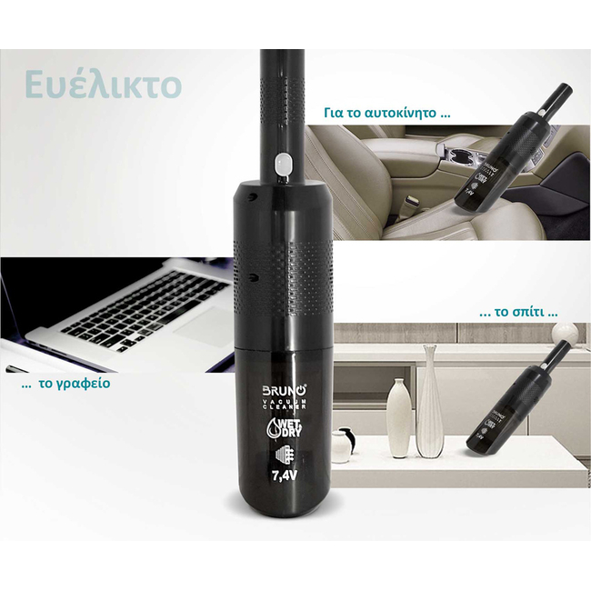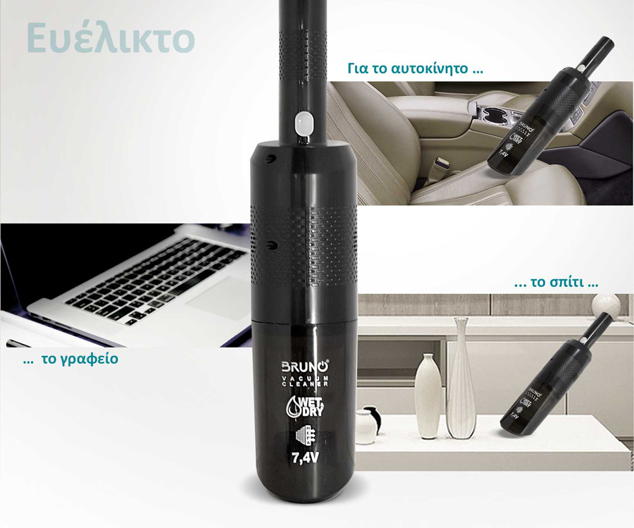 Το επαναφορτιζόμενο σκουπάκι BRN-0125 της BRUNO είναι ιδανικό για γρήγορο και εύκολο τοπικό καθάρισμα στερεών και υγρών υπολειμμάτων στο αυτοκίνητο, στο γραφείο, αλλά και στο σπίτι.