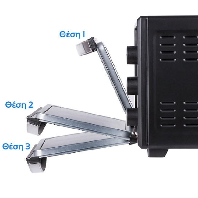 - 3 διαφορετικά ύψη για να βάλετε το ταψάκι ή τη σχάρα