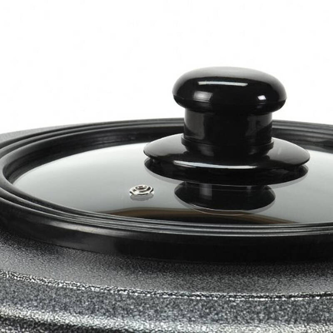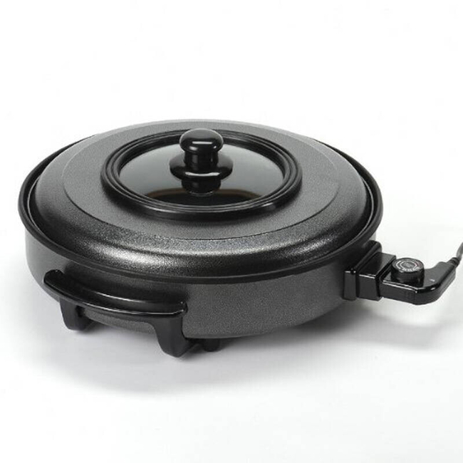 Φούρνος πίτσας διαμέτρου 42 εκατοστών (40 εκατοστά εσωτερικά) με ισχύ 1500W. Διαθέτει θερμοστάτη με 5 ρυθμίσεις θερμοκρασίας, γυάλινο καπάκι για να παρακολουθείτε το φαγητό όταν ψήνεται και αντικολλητική επίστρωση.