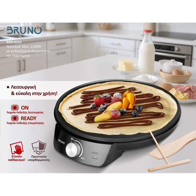 BRUNO BRN-0252 Κρεπιέρα 30εκ. 1200W με ρυθμιζόμενο θερμοστάτη και εξαρτήματα, μαύρη