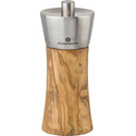 Ο μύλος είναι κατασκευασμένος από ευγενές ελαιόξυλο και ανοξείδωτο χάλυβα, παρέχοντας μια κομψή φινέτσα που συμπληρώνει τη διακόσμηση κάθε κουζίνας. Με ύψος 14 cm και διάμετρο 5.5 cm, είναι ιδανικά σχεδιασμένος για άνετη χρήση.