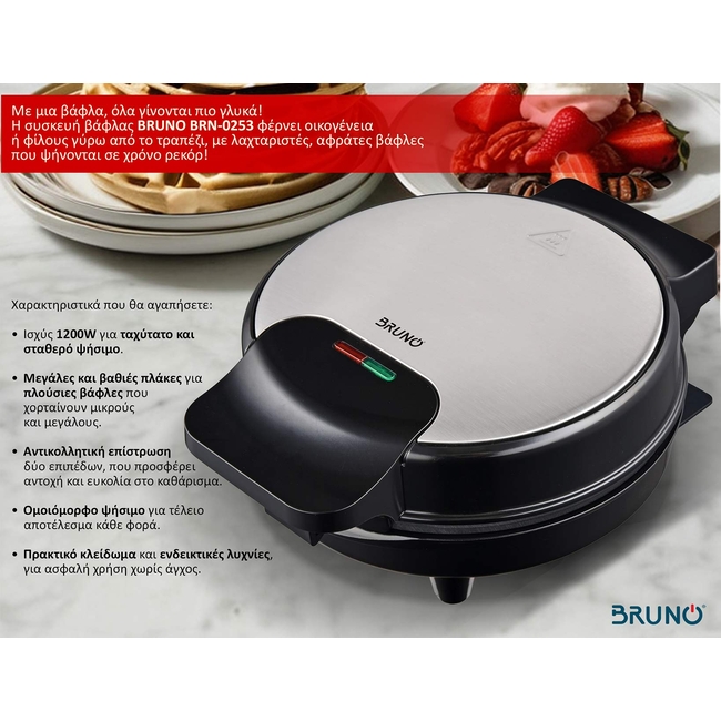 Η συσκευή βάφλας BRUNO BRN-0253 φέρνει οικογένεια ή φίλους γύρω από το τραπέζι, με λαχταριστές, αφράτες βάφλες που ψήνονται σε χρόνο ρεκόρ!