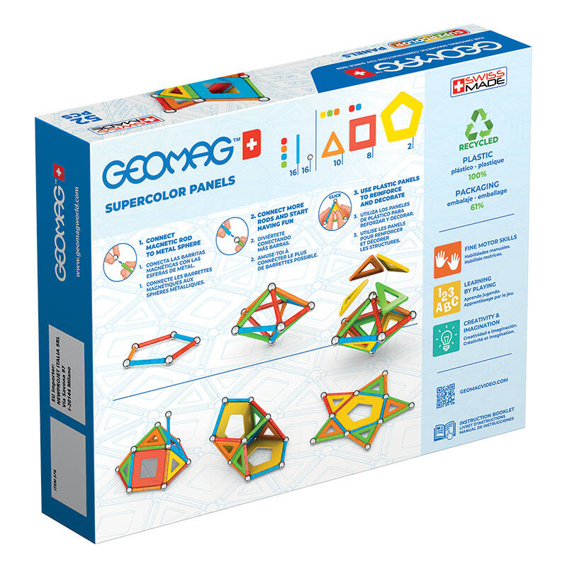 Διασκέδαση και Εκπαίδευση: Το GEOMAG Supercolor Panel ενισχύει τη δημιουργικότητα των παιδιών, επιτρέποντάς τους να πειραματιστούν με διάφορα σχήματα και χρώματα. Μέσα από το παιχνίδι, τα παιδιά ανακαλύπτουν τις βασικές αρχές της φυσικής, της γεωμετρίας και της μηχανικής, δημιουργώντας κατασκευές που εντυπωσιάζουν.