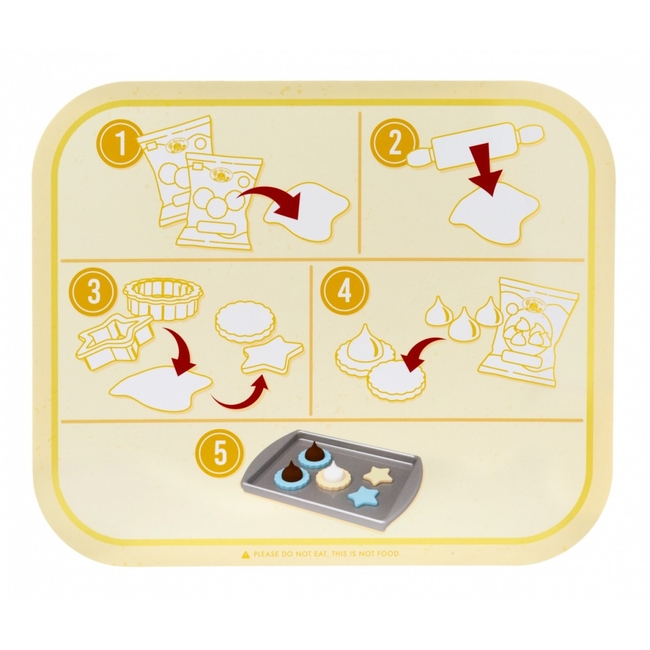 Επιπλέον, το κιτ περιλαμβάνει λειτουργικά μαγειρικά σκεύη για να ενισχύσει την αυθεντικότητα της εμπειρίας του παιχνιδιού. Το ταψί, ο πλάστης και οι κόφτες μπισκότων προσκαλούν τα παιδιά να ρολάρουν, να κόβουν και να δημιουργούν τα μπισκότα τους όπως οι πραγματικοί φούρναρηδες!