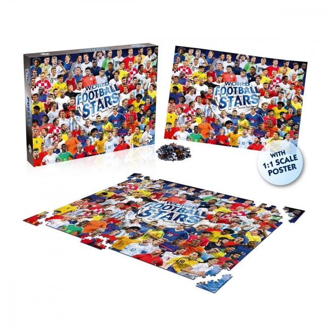 Το Puzzle 1000 elementów World Football Stars είναι ένα premium παζλ που εντυπωσιάζει τόσο τους λάτρεις του ποδοσφαίρου όσο και τους φίλους των παζλ. Το παζλ απεικονίζει μια λεπτομερή εικόνα που παρουσιάζει θρυλικούς ποδοσφαιρικούς αστέρες από διάφορες εποχές, όπως ο Pelé, ο Maradona, ο Harry Kane, ο Gary Lineker και ο Frank Lampard. Αυτή η σύνθεση προκλήσεων και τέχνης το καθιστά απαραίτητο για κάθε λάτρη του ποδοσφαίρου.