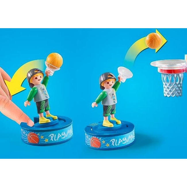The set consists of a gym extension, three PLAYMOBIL figures, a basketball hoop with basketball, gymnastic bars, soccer goal and soccer ball, tennis rackets and other great extras for sporty fun in the children' s room.