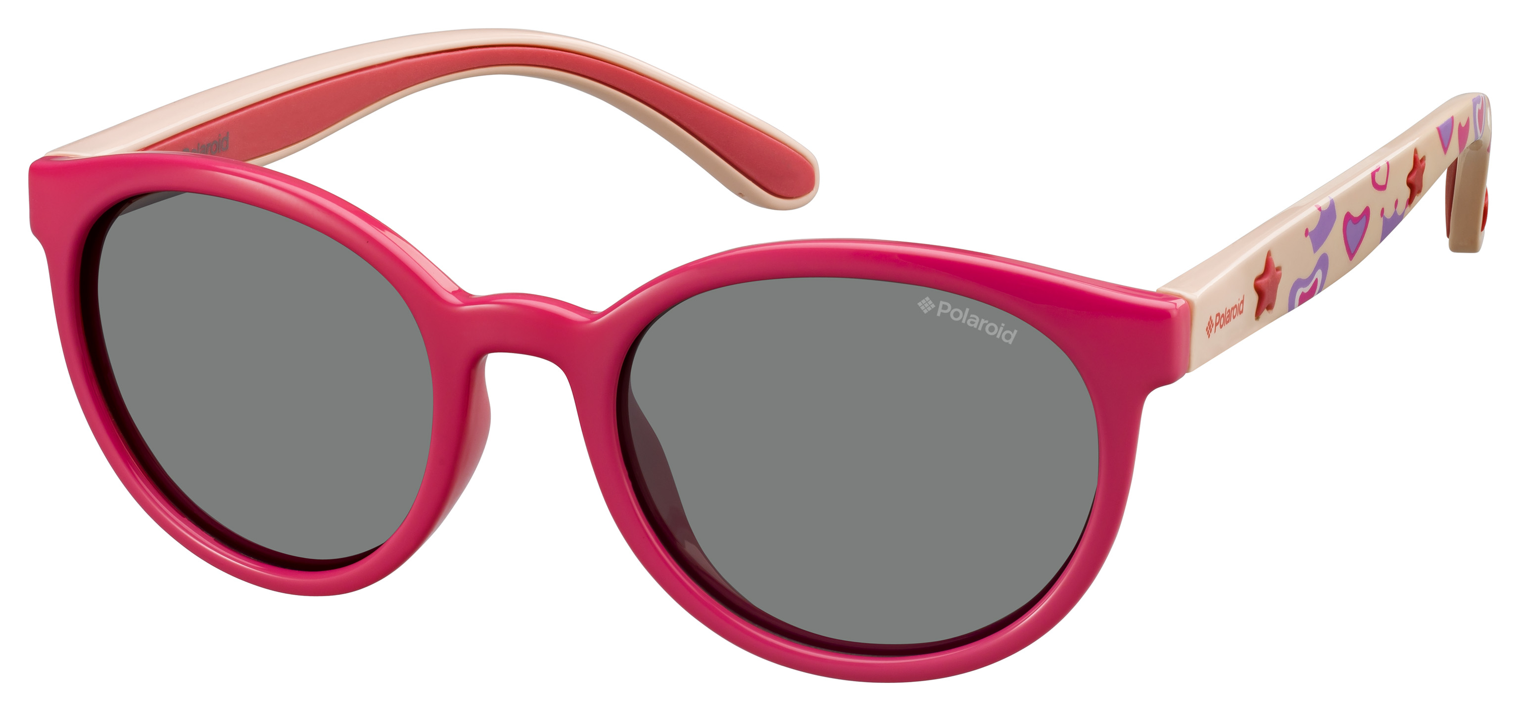 CHILDISH SUNGLASSES POLAROID PLD8014SMBTAI (Lens/Bridge/Temple) 46/18/127 mm). Material: PLASTIC. Colour: PINK. Measures (Lens/Bridge/Temple): 46/18/127mm. PINK GREY.