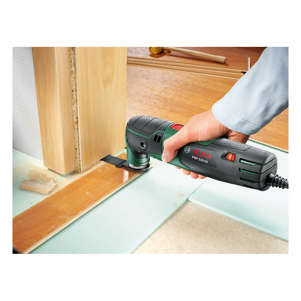 Το Bosch Multifunktionswerkzeug PMF220 CE Set είναι ένα εξαιρετικά ευέλικτο εργαλείο σχεδιασμένο να καλύψει ποικιλία εργασιών ανακαίνισης και επισκευών DIY. Αυτό το καλωδιακό πολλαπλό εργαλείο διαπρέπει σε κοπή, πριόνισμα, γαρνίρισμα, ξύσιμο, παλινδρόμηση, αλλά και γυάλισμα διαφόρων υλικών, όπως ξύλο, μέταλλο, πλαστικό, γυψοσανίδα, αρμόστοκος και κονίαμα.