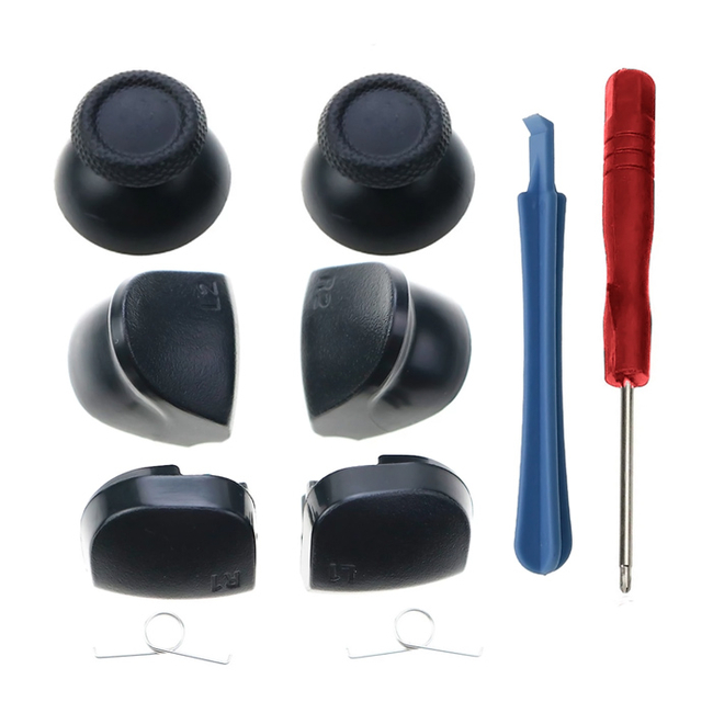 Ανταλλακτικά πλήκτρα L1, R1, L2, R2 & Joystick για το χειριστήριο DualSense του PlayStation 5. Στην συσκευασία συμπεριλαμβάνονται κατσαβίδι και εργαλείο για την εξαγωγή των πλήκτρων.
