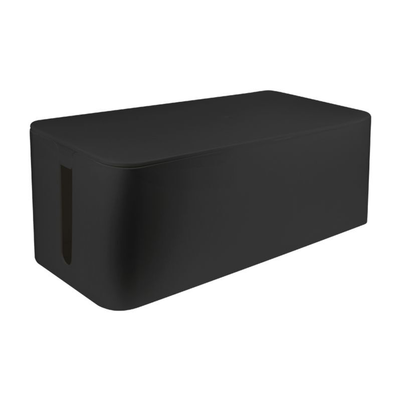 • <table><tr><td>Product Type</td><td>Cable management box</td></tr><tr><td>Width</td><td>24 cm</td></tr><tr><td>Depth</td><td>12 cm</td></tr><tr><td>Height</td><td>13 cm</td></tr><tr><td>Color Category</td><td>Black</td></tr><tr><td>Product Material</td><td>Plastic</td></tr><tr><td>Color</td><td>Black</td></tr></table>