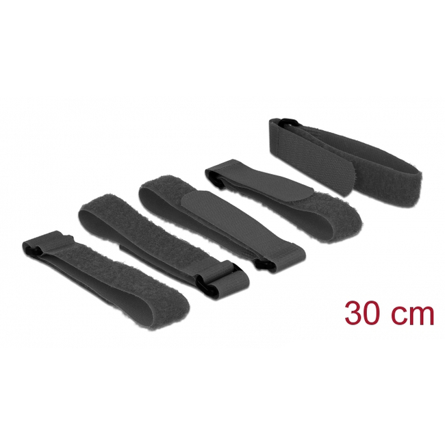 DELOCK ιμάντες τύπου Velcro 18704, 30 x 2cm, μαύρος, 5τμχ
