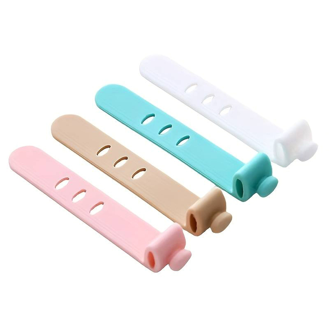 Η συσκευασία περιλαμβάνει 4 δεματικά καλωδίων σε λευκό, ροζ, πράσινο και καφέ χρώμα.