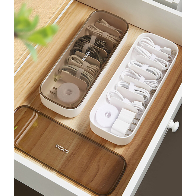 Πλαστικό κουτί της Ecoco, ιδανικό για την οργάνωση καλωδίων και φορτιστών. Διαθέτει 7 θέσεις (1x φορτιστών & 6x καλωδίων), ενώ, το καπάκι του είναι διάφανο, χάρη στο οποίο, το περιεχόμενο του παραμένει πάντα ορατό.
