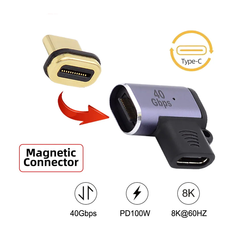 POWERTECH αντάπτορας USB-C PTH-107, μαγνητικός, 100W, 40Gbps, γκρι