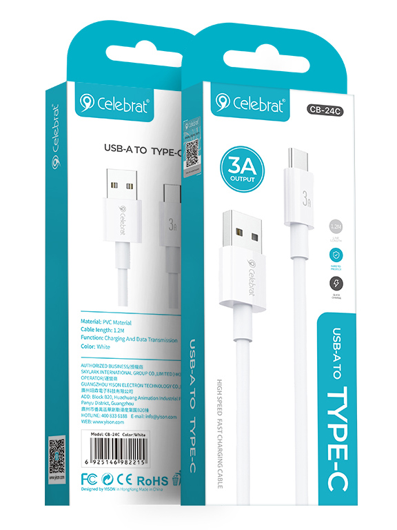 CELEBRAT καλώδιο USB-C σε USB CB-24C, 3A, 1.2m, λευκό