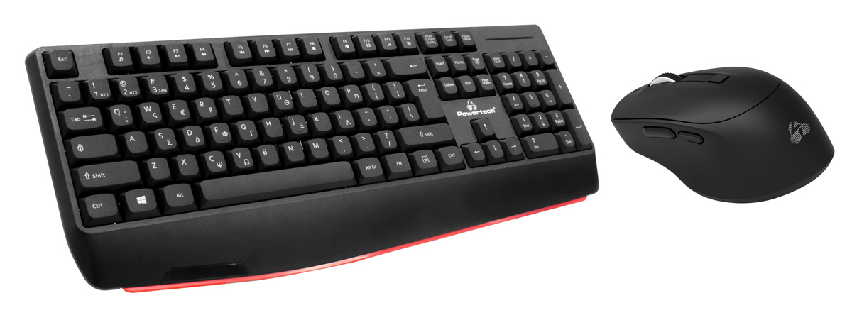 Set περιφερειακών της Powertech που αποτελείται από ασύρματο πληκτρολόγιο και ασύρματο οπτικό ποντίκι. Είναι συμβατά με συσκευές όπως desktop, laptop, tablet κ.λπ.