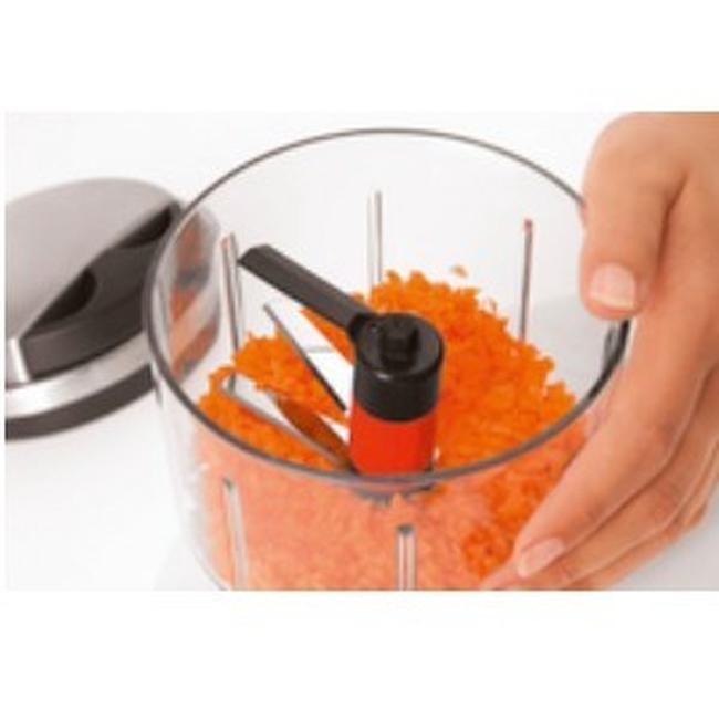 Μία από τις πιο αξιοσημείωτες δυνατότητες αυτού του προϊόντος είναι οι διπλές λεπίδες, εξοπλισμένες με εκτροπείς προς τα πάνω και προς τα κάτω, οι οποίες εξασφαλίζουν ομοιόμορφο ψιλόκομμα χωρίς να δημιουργούν μαλακά σημεία. Αυτό επιτρέπει ακριβή κοπή, ενισχύοντας την ποιότητα των προετοιμασιών σας.