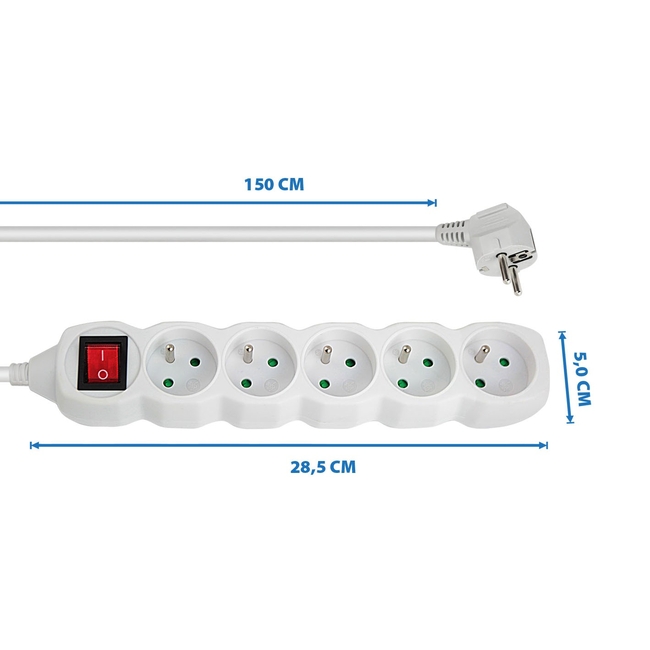 Διαθέτοντας πέντε AC πρίζες, η πολύπριζα είναι ικανή να αντέχει μια σημαντική ποσότητα ενέργειας, ιδανική για διάφορες συσκευές όπως υπολογιστές, λάμπες και άλλες ηλεκτρονικές συσκευές. Η ανθεκτική κατασκευή του εγγυάται μια συνεχόμενη και σταθερή τροφοδοσία ρεύματος, εξασφαλίζοντας ότι οι συσκευές σας λειτουργούν χωρίς διακοπή.