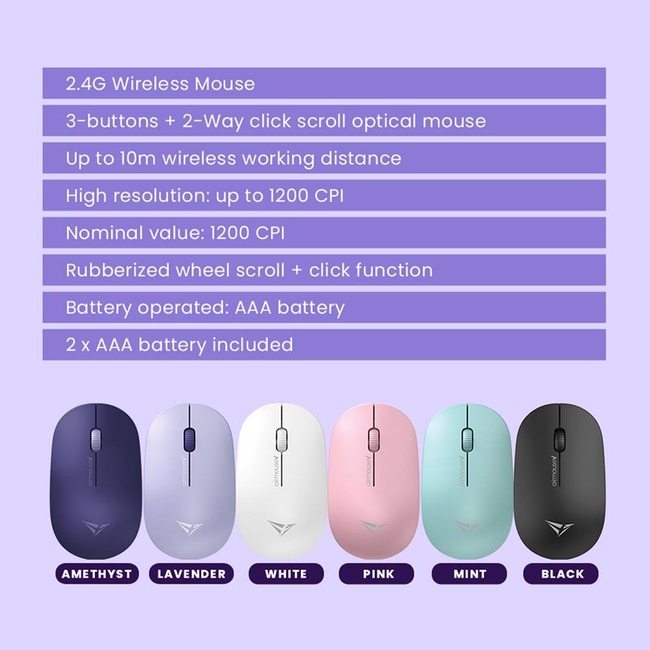 Ποντίκι Ασύρματο Alcatroz Airmouse V Lavender 1200Dpi